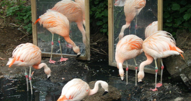 بيوجد بعض أنواع من الطيور لا تتكاثر إلا في وجود أعداد كبيرة و لذلك تقوم إحدي حدائق الحيوان بتركيب عدد من المرايا حولهم لإعطائهم إنبطاع أن أعدادهم كبيرة و يبدأون التكاثر .