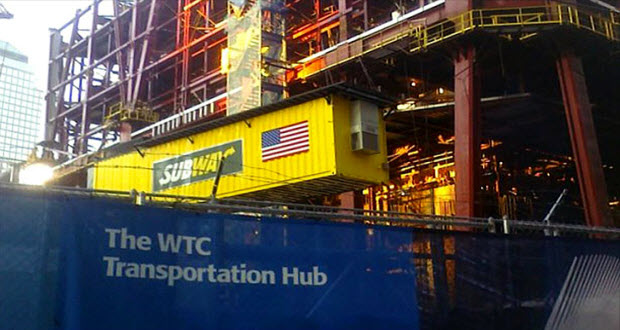 أثناء بناء مركز التجارة العالمي كان لدي العمال خيارين إما إحضار وجبات الغذاء معهم منذ بداية اليوم أو مواجهة المهمة شبه المستحيلة في الهبوط إلي الأرض و إحضار الطعام و هذا يستغرق 30 دقيقة في النزول و لحل المشكلة قامت شركة سابواي بإنشاء متجر كامل داخل حاوية شحن و رفعها للعمال يوميا .