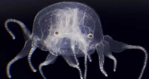 يتميز قنديل البحر الصندوقي من فئة الكوبوزوا بإمتلاكه عيون حقيقية لها عدسات و قرنيات شبيهة بالبشر .