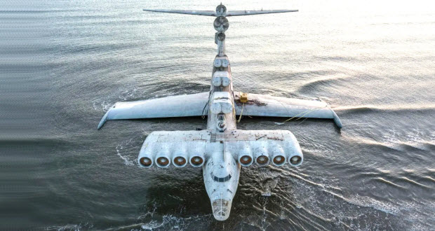 لون إكرانوبلان و هي طائرة روسية خارقة يبلغ وزنها 380 طن و مصممة للطيران علي إرتفاعات منخفضة فوق المياه بسرعات عالية جدا لتدمير حاملات الطائرات و كان يطلق عليها الأمريكيين إسم وحش بحر قزوين .