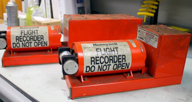 مسجل بيانات الرحلة الذي يتم إستعادته من الطائرات المنكوبة و المعروف بإسم الصندوق الأسود مع بدء إستخدامه طلبت هيئة الطيران الفيدرالية أن يكون باللون الأصفر أو البرتقالي لجعله أكثر وضوع أثناء إستعادته أما إسمه الصندوق الأسود فبسبب أنه يتم الرجوع إليه في مناسبات كارثية و أن الطائرة وقتها تكون متفحمة و باللون الأسود .