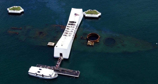 حاملتي الطائرات يو إس إس أريزونا و يو إس إس يوتا اللذان تم تدميرهم خلال هجوم بيرل هاربر لا يزالون حتي اللحظة يقومون بتسريب زيت من داخلهم .