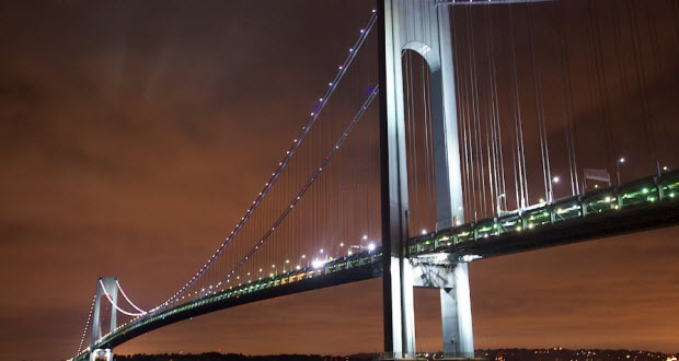 جسر فيرازانو نارو الذي يوجد في نيويورك هو واحد من أطول الجسور المعلقة في العالم و يتميز بأن المسافات بين الأعمدة الواصلة له طويلة جدا لدرجة أنه بسبب إنحناء الأرض بيوجد فارق في الإرتفاع بين طرفيه يصل إلي 5 سنتيمترات .