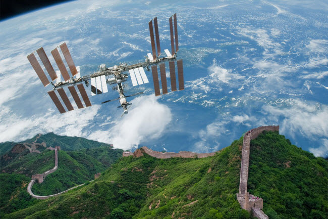 لقد بحثنا عن سور الصين العظيم و على الرغم من أنه أمكننا رؤية أشياء صغيرة مثل مدارج المطارات الا انه يبدو أن سور الصين العظيم مصنوع إلى حد كبير من مواد لها نفس لون التربة المحيطة به و على الرغم من كثرة القصص المستمرة حول امكانية رؤيته من القمر الا أن سور الصين العظيم غير مرئي تقريبًا من ارتفاع 290 كيلومترا .